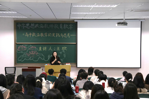 特邀巴蜀中学思想政治学科王欢老师,在求是楼213作题为“高中政治教学的实践与思考——与未来思政教师的对话”的讲座。讲座由学院政教系副主任彭君君博士主持,h小说
