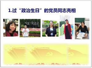 党员过“政治生日”是基层党组织教育党员的重要活动之一,过入党的政治生日,则可以让党员“不忘初心、牢记使命”,始终保持先进性和纯洁性。正像同志们所说的“第一次过政治生日,很激动很感动”;“让我回想起入党之初,对这样一个先进组织的向往;沐浴在党组织的培养教育中,感谢党组织的培养”;“初心未改、誓言未变”“我会牢记党员身份,秉承初心,勇担责任与使命”;“我会忠诚党的教育事业,为党育人为国铸才”。这一重要政治仪式,引导广大党员进一步强化身份意识、宗旨意识和责任意识,提醒党员在工作和生活中时刻以党员的标准严格要求自己,切实发挥先锋模范作用,从而增强基层党组织的创造力、凝聚力和战斗力。