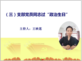 2020年6月18日下午2:30,毛中特党支部在主题党日活动中,组织上半年入党的郑瑜、吴涯、程智、何勇、黄家茂等五位同志一起过党员的“政治生日”,仪式包括党组织为每位同志送上生日祝福和成长寄语、重温入党誓词、“那年  我入党”——忆入党初心  谈党员责任使命三个环节,由宣传委员王映莲同志主持。