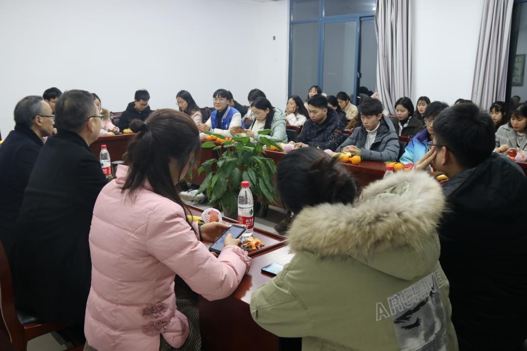 2019年迎新晚会总结座谈会”。学院党委书记刘军老师、院长陈洪老师、学工办教师代表、各年级辅导员以及学生会部分成员参与本次座谈会。