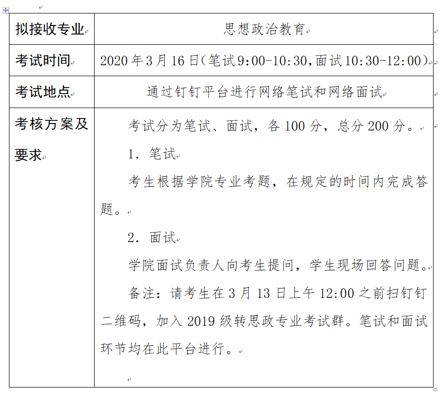 h小说 2019-2020学年转专业考试安排表