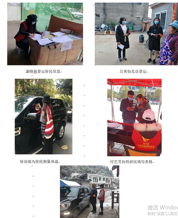 h小说 霍娜(研究生)、周月、伍凯、徐维、潘晓娟、吕美怡、徐诗湉、付艺芳、简嫔9名同学主动请缨,在这场没有硝烟的战争中,以实际行动助力社区乡村疫情防控工作:示意停车、为居民测体温、填写登记表格、巡逻劝阻出行人员等,协助社区做好新冠肺炎排查、宣传等工作,有序参与社区防疫工作,成为联防联控群防群控的重要力量。