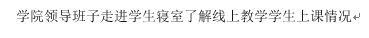 教学保障与督导得力。一是统筹服务。学院在正式进行线上教学前对教师本周所有网课使用平台进行了摸底统计,并将统计信息第一时间周知学院督导组。二是督导在线进课堂。学院督导组老师在此统计信息基础上,每天抽取2-5门课程进行在线听课,课后与老师通过电话和网络沟通两种方式进行了沟通,同时将相关情况及时与学院领导进行沟通。三是学院领导线下进宿舍。学院领导班子成员和学工队伍一起走进学生宿舍对四个年级学生在线学习、毕业论文和实习等学习情况进行了解,并重点对学生在线学习状况进行了实地探访。教科办及各教研室负责人及时跟踪了解师生线上教学情况,及时统筹解决线上教学中的困难和问题。