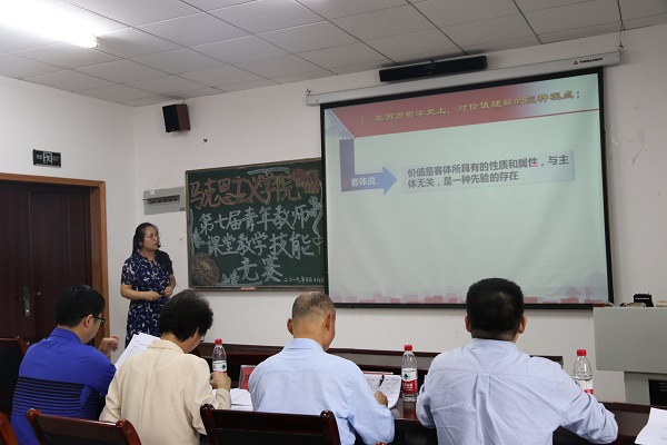 为了提升h小说 青年教师课堂教学技能,提高课堂教学质量和水平,引导和鼓励青年教师真心热爱讲台、潜心教书育人、全心投入教学,2019年5月16日下午,h小说 、h小说 工会在汇贤楼举行了学院第七届青年教师课堂教学技能竞赛,14位青年教师参加了竞赛。经评委认真评议,李洪淑、吕振丽获一等奖,杨桦、杜红、沈乾飞、黄正获二等奖,马俊恩、高珊、李晓敏、杨頔获三等奖,邵二辉、吴烁偲、孙杨、马晓星获优秀奖。学院对获奖的青年教师进行了表彰和奖励,并推荐李洪淑代表学院参加学校青年教师课堂教学技能竞赛。