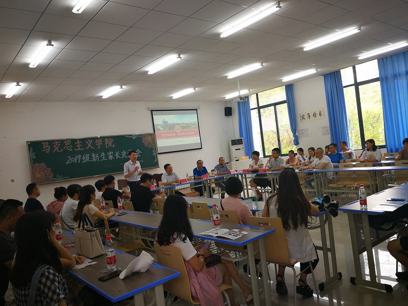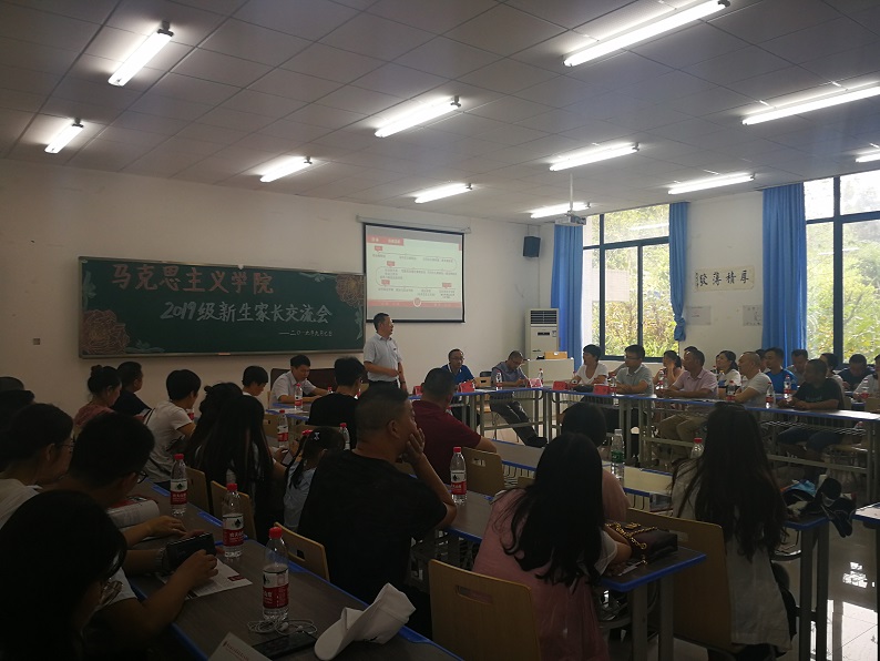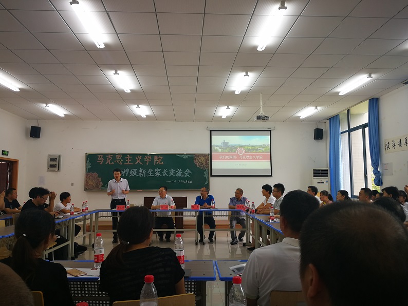 为搭建新生家长与学院面对面沟通平台,使新生家长深入了解h小说 改革发展和教育教学情况,共同助力2019级新生成长成才,2019年9月7日下午,h小说 在汇贤楼106教室举办了2019级思想政治教育专业本科新生家长交流会。学院党委书记刘军、院长陈洪、副书记姜土生,政教系副主任田方林教授、党政办主任廖文梅、团总支书记和学工办主任马小又、教学科研办主任张晓庆,以及2019级新生家长70余人参加交流会。交流会由学院党委副书记姜土生主持。