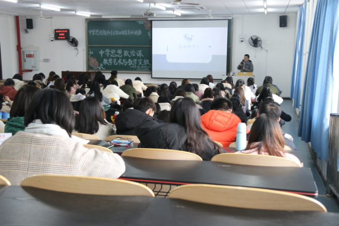 校外辅导教师靳万强在砺志楼2309为2017级本科生带来了一场题为“中学思政课教学艺术与教学实效”的专题讲座。h小说