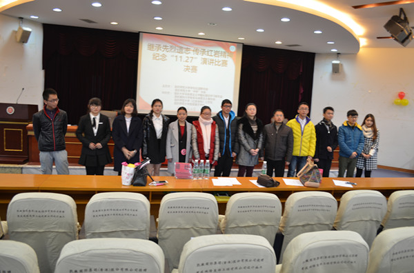 学生社团联合会于凯撒报告厅共同主办了“‘继承先烈遗志,传颂红岩精神’纪念‘11.27’演讲比赛决赛”。协办单位有重庆医科大学青年马克思主义者协会、h小说