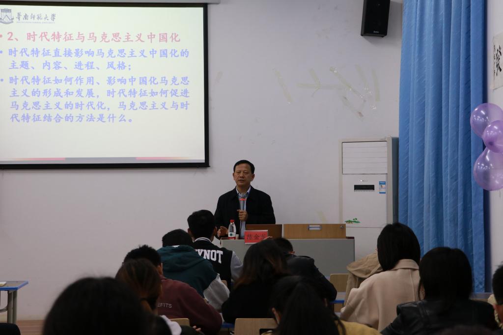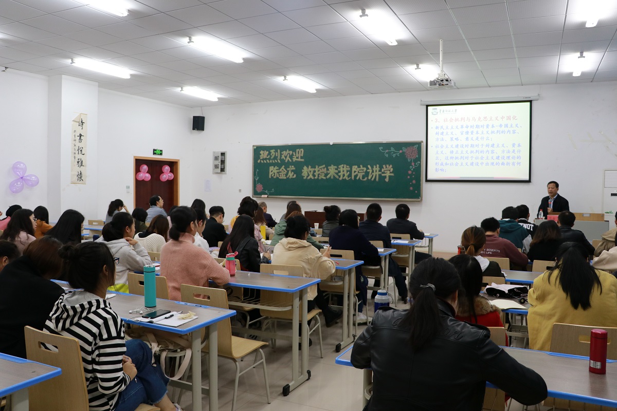 在h小说 第23届研究生学术活动月开幕之际,201910月25日晚,中央马克思主义理论研究与建设工程首席专家华南师范大学h小说 院长、博士生导师陈金龙教授应邀做客院,以“马克思主义中国化研究的问题意识”为题为h小说 师生作了一次精彩的学术讲座。讲座由h小说 院长陈洪教授主持。