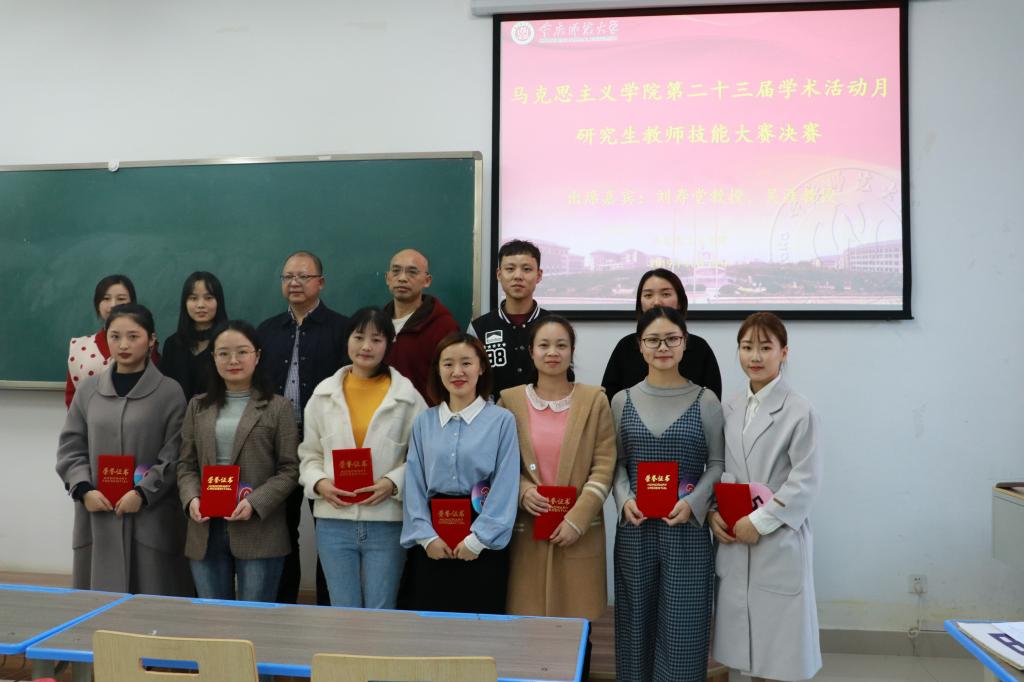 “三寸粉笔,三尺讲台系国运;一颗丹心,一生秉烛铸民魂。”在大家的翘首期盼中,h小说 第二十三届学术活动月研究生教师技能大赛决赛如期举行。2019年11月14日下午2:30至5:00,十位选手于汇贤楼X106教室给同学们带来了一场别开生面的教学盛宴,本次比赛特别荣幸地邀请到刘寿堂教授和吴涯副教授担任专家评委。比赛由蔡淋芬主持。
