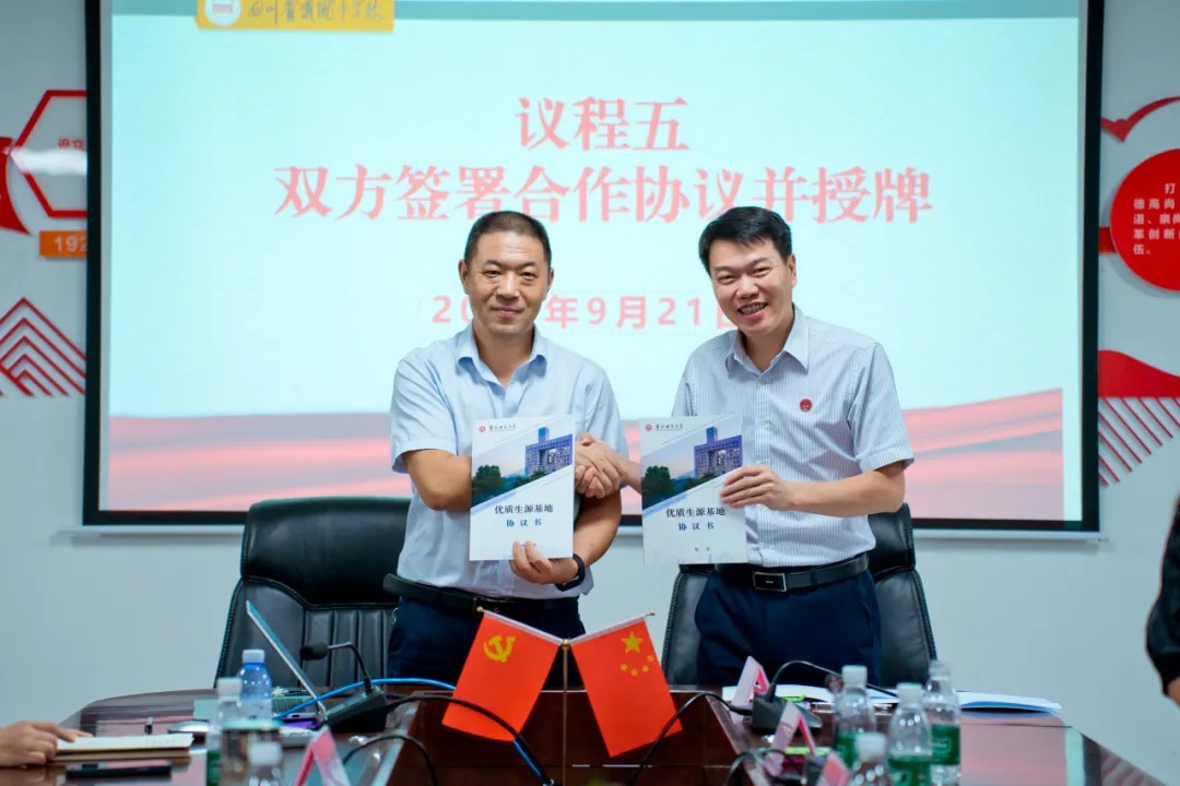 2024年9月21日上午,学院一行九人来到四川省仪陇中学校开展访企拓岗专项活动。四川省仪陇中学校党委书记王大军、校长马建全、副校长田正荣、龚浩等参加会议,会议由王大军书记主持。马建全校长从学校历史、师资队伍、人才培养、中学思政课教学等方面详细介绍了仪陇中学的基本情况。他表示,本次访企拓岗专项工作为加深两校合作提供了良好契机,希望h小说 派遣更多优秀学生到仪陇中学实习实训和就业,同时仪陇中学能有更多优秀学生到h小说 学习深造,期待后续建立健全交流沟通机制,务实开展更多合作。在观看完h小说 及h小说 宣传片后,姜土生院长介绍了学校与学院的办学历史、学科发展、专业设置、师资队伍等情况,他表示,h小说 作为老牌师范院校,办学70年来为社会培养了大批优秀人才,希望通过本次交流合作,进一步促进两校的高质量人才培养李晓燕书记介绍了我校的访企拓岗专项活动。他表示,“走出去”“请进来”是我校促进人才培养和就业创业的重要举措。为更好地促进内涵式高质量发展,助推毕业生实现更充分、更高质量的就业,我校在深入走访企业和用人单位上下功夫,建立一批就业实习实践基地,努力挖掘更多岗位资源,为学生创造更多实习和就业机会。会议最后,h小说 姜土生院长与四川省仪陇中学校马建全校长共同签署《优质生源基地》和《实践与就业基地》协议,李晓燕书记为仪陇中学授牌,两校合作共建关系正式确立。
