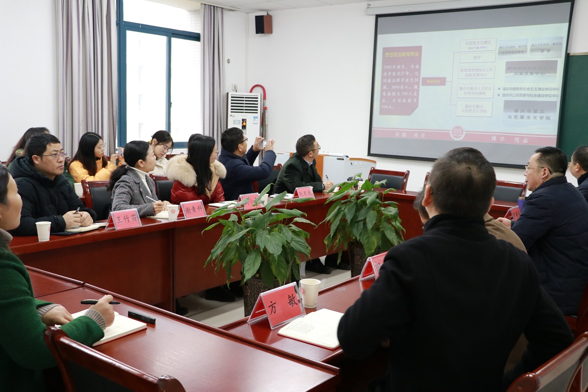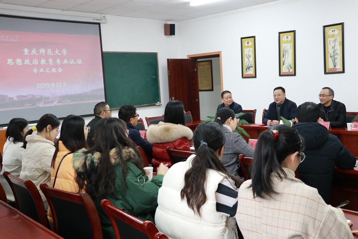 交流表示热烈欢迎。接着,他结合学院思想政治教育专业参加教育部师范专业认证补充汇报的ppt,对学院的办学历史、学科科研、专业建设、办学特色等作了介绍,并就师范专业认证中需要注意的统一思想、提高认识、全心投入、全员参与、全力以赴等问题作了说明。