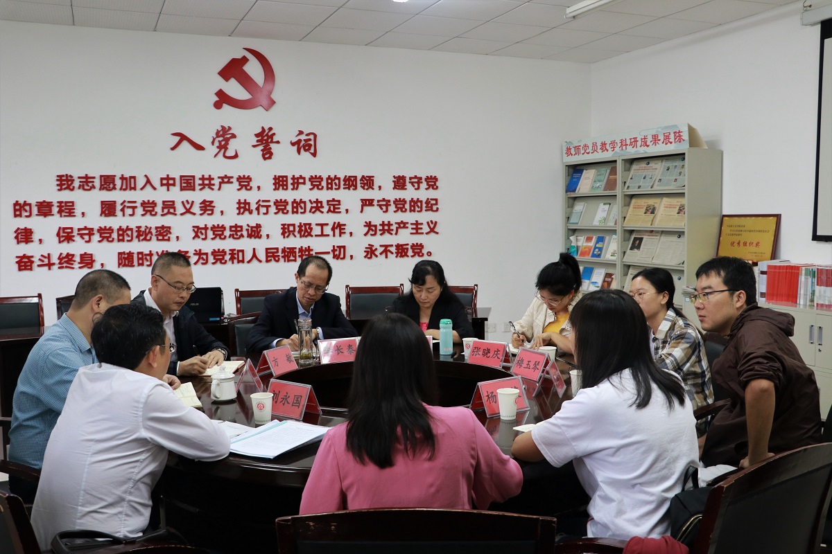 “马克思主义基本原理概论”教研室、“毛泽东思想和中国特色社会主义理论体系概论”教研室的师资队伍、教学安排、教研活动、科研成果等情况。李教授提出教师要重视科研,以科研推动教学,不断提升教学质量。程智副教授指出教研室的发展离不开每位老师的付出和努力,也分享了教研室成员积极主动承担责任,为学院发展持续努力的故事。