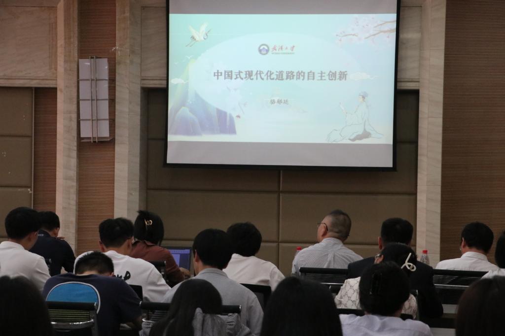 特邀中央马克思主义理论研究与建设工程首席专家、武汉大学思想政治教育研究院院长、博士生导师骆郁廷教授于三春湖会议厅为师生作题为“中国式现代化道路的自主创新”的学术讲座。本次讲座系h小说