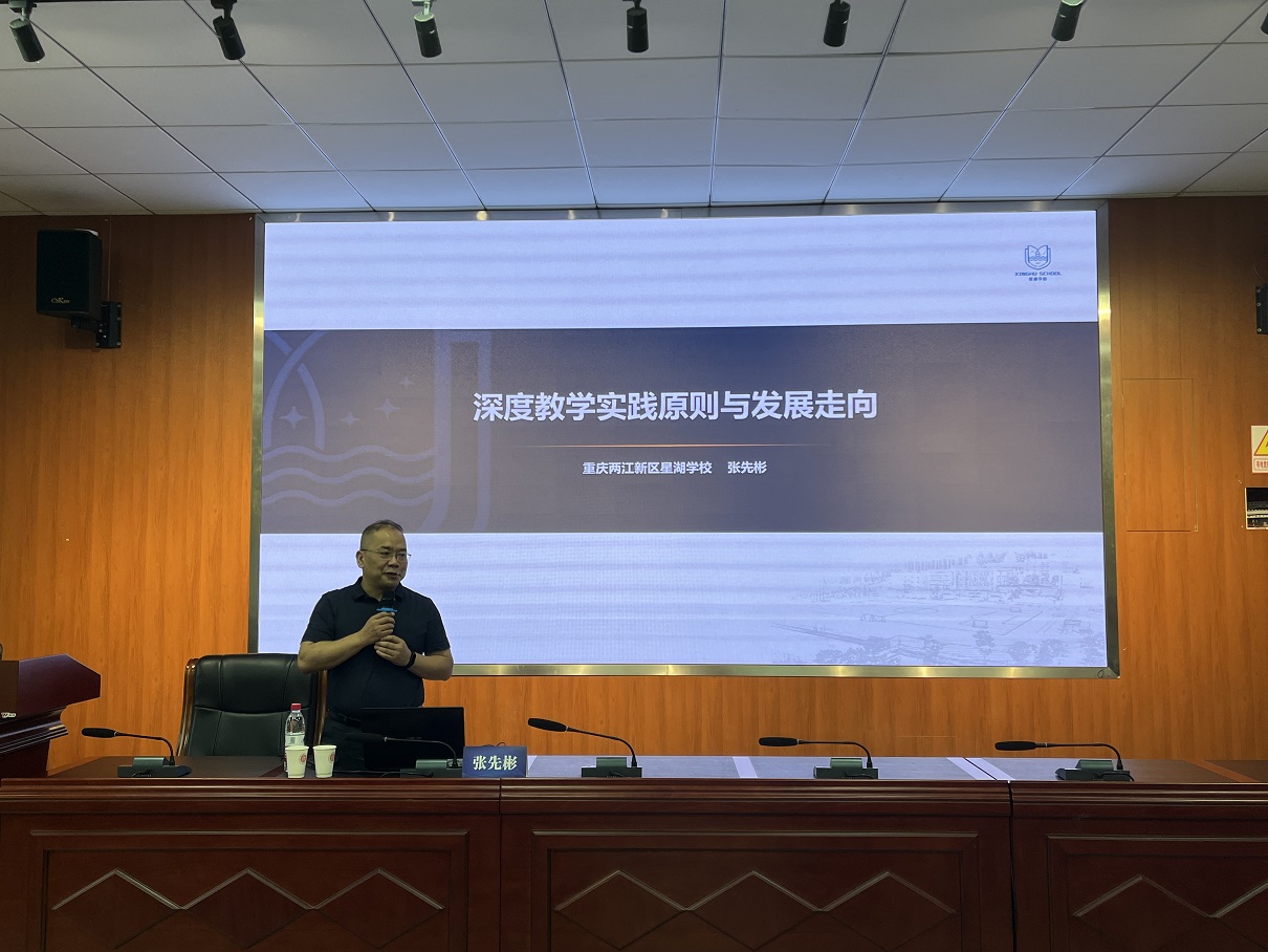 教师教育学院院长李祚山、重庆两江新区星湖学校校长张先彬、重庆江北区教师进修学院教研员罗萍等四位专家分别作了“AI时代未来教师修行记”“新时代师生心理健康及其维护——做一个幸福进取的教师”“深度教学实践原则与发展走向”“校本研修有效性”的专题报告。专家们以其扎实的理论功底和丰富的实践经验为全体学员带来了精彩纷呈、干货满满的营养,学员们课后进行了积极的学习分享。陈义燕老师分享到:在罗化瑜专家的讲座中,为我们分享了多项人工智能的使用实例,打开了老师们的眼界。得数据得天下,课堂教学过程,也需用数据说话。在人工智能时代下,教育该何去何从?让我们从罗教授的讲座中去探寻教师成长之路,为未来教育做好准备!钱宗吉学员分享到:李祚山教授给我们带来的全是老师们在日常教学和心理健康教育及心理辅导工作中可以直接运用的实操方法和技巧,为我们这样没有专业心理健康老师的薄弱学校及时输养赋能,让我们更加懂得心理健康教育的普及性、重要性和紧迫感。同时让我意识到作为一名一线老师“修己助人”的重要性。从改变认知开始,不断的更新知识掌握技能。胡余萍学员分享到:张先彬校长给我们带来了一场内涵深刻,内容丰富,非常专业的讲座,并用三点总结了学习感受。一是深度思考。教学不仅是知识点本身,还要去深度思考它来自何处,将要去何处,它的学科价值教育价值是什么。二是持续思考。在大数据时代,我们可以通过各个渠道去获得资源。课标给我们明确了要求,在各个浏览器,数据库等,可以获取教案,课件,论文等等。三是落到实处。学习理论和方法,还要去实践,运用到教学中去。去反思总结,形成文字资料等等。王小青学员分享了罗萍专家讲座学习心得。她说:罗老师从有效性无效性谈起,聚焦结果输出的培训量表,以鲜活真实的案例为基础,对培训的有效性进行了详细的阐述和解读,明确了全员卷入,建设学习共同体的有效培训模式。有理论有实例,深刻阐明了培训是解决问题的培训,是促进成长的培训。希望我们能学有所思,思有所践,走小步,不停步,不断成长。在分享过程中,各位专家还为全体学员解疑答惑并交流经验。