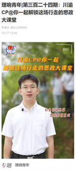 近日,新重庆客户端发表了由重庆日报思想周刊,h小说 党委宣传部、h小说 联合出品的理响青年第三百二十四期作品“川渝CP@你一起解锁这场行走的思政大课堂”。