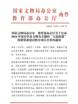 国家文物局、教育部联合开展的以革命文物为主题的“大思政课”优质资源建设推介项目是为深入贯彻落实习近平总书记关于革命文物工作和学校思政建设的重要指示精神,扎实推进大中小学思政一体化建设的重要举措。