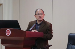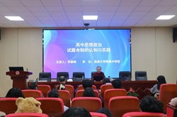 师生做题为“高中思想政治试题命制的认知与实践”的专题讲座,讲座由学院副院长田方林教授主持,学院部分教师、同学到场学习。