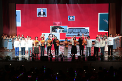 歌舞《让世界看见我们的光芒》展现了林悦的支教生活充实而精彩,也让观众领略到了高原格桑花的独特魅力,感受到了高原之上熠熠生辉的青春梦想。在支教生活中,林悦努力发现学生的闪光点,引领他们追逐自己的梦想,与学生建立了深厚的师生情谊。一首《一声老师,一生老师》唱出了浓浓师生情,在温情的歌声中,学生代表们向今年荣休的陈洪、周绍英老师及新加入h小说