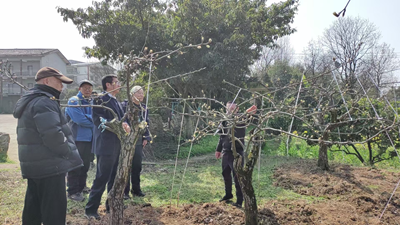 下午,大家前往黄瓜山中华梨村游玩。黄瓜山春意正浓,山间绿意盎然,空气中弥漫着清新的草木香气,漫山的梨花正蓄势待放。退休教师们或漫步山间小道,采摘新鲜野菜;或围坐在一起,畅谈退休生活;或与田间果民交流,听取果树栽培经验。大家笑语喧哗在山间回荡,为这春日增添了几分温馨与活力。