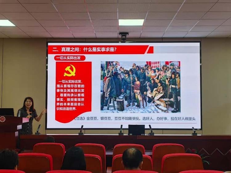 决赛一奖获得者彭君君老师围绕毛泽东思想活的灵魂之实事求是,开启历史之问、真理之问、现实之问的三重追问,进一步明确实事求是在新时代仍然发挥重要作用。希望同学们能够掌握和运用现代科学技术的调研方法,增强实事求是本领,培养批判性思维和解决问题的能力,敢于发出“天问”、挑战尖端科学问题,把研究写在祖国的大地上。