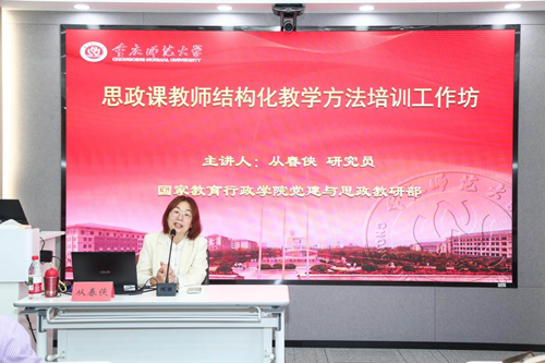 在汇贤楼409成功举办“思政课教师结构化教学方法培训工作坊”。本次培训特邀国家教育行政学院党建与思政教研部主任从春侠研究员作专题讲授与实操指导,旨在深入推动思政课教学方法创新,提升课堂实效性与吸引力。h小说
