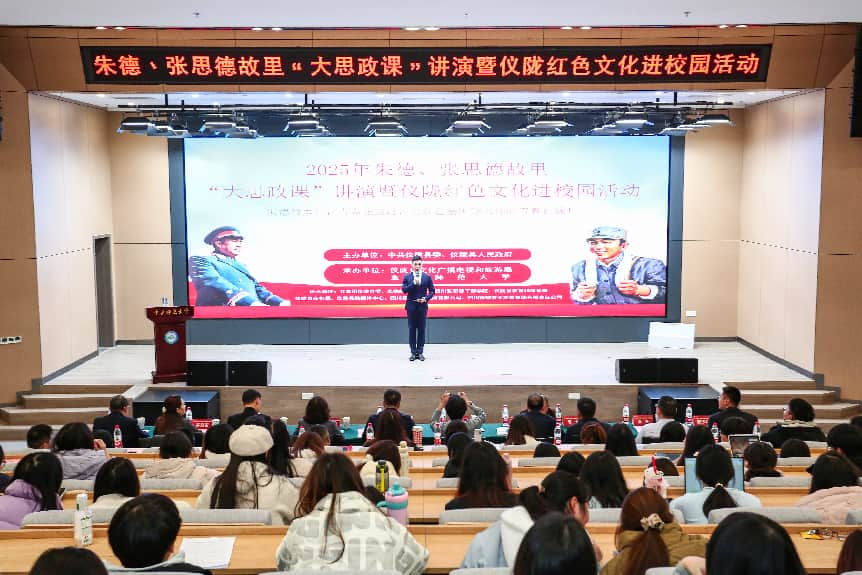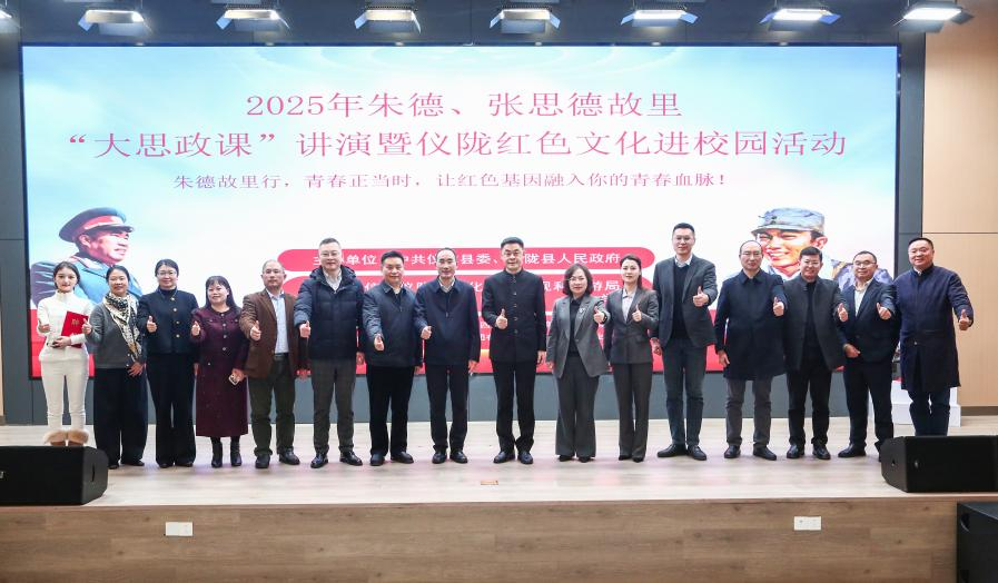 相连的精神纽带,期待双方合作开发思政课程、开展红色研学,让红色基因在躬身践行中“传”下去,打造校地融合典范。他诚邀经济与管理学院的师生们用经济学视角为产业高质量发展献策,也邀请地理与旅游学院师生深挖仪陇山水生态与人文风情的独特价值,讲好仪陇故事。最后他强调,仪陇不仅有红色文化的深度、产业发展的热度、自然生态的美度,更有市井生活的温度,诚挚邀请学校师生走进朱德故里、德乡仪陇,感悟信仰伟力、品味人间烟火,期待红色精神与铸魂育人旋律在德乡奏响和声。