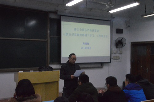 2019年1月2日晚,“习近平新时代中国特色社会主义思想”通选课在弘德楼15103教室继续进行第十五讲。本次讲课由校纪委书记肖应红教授主讲,主题是“落实全面从严治党要求:习惯在受监督的环境下学习、工作和生活”。此次讲课由h小说