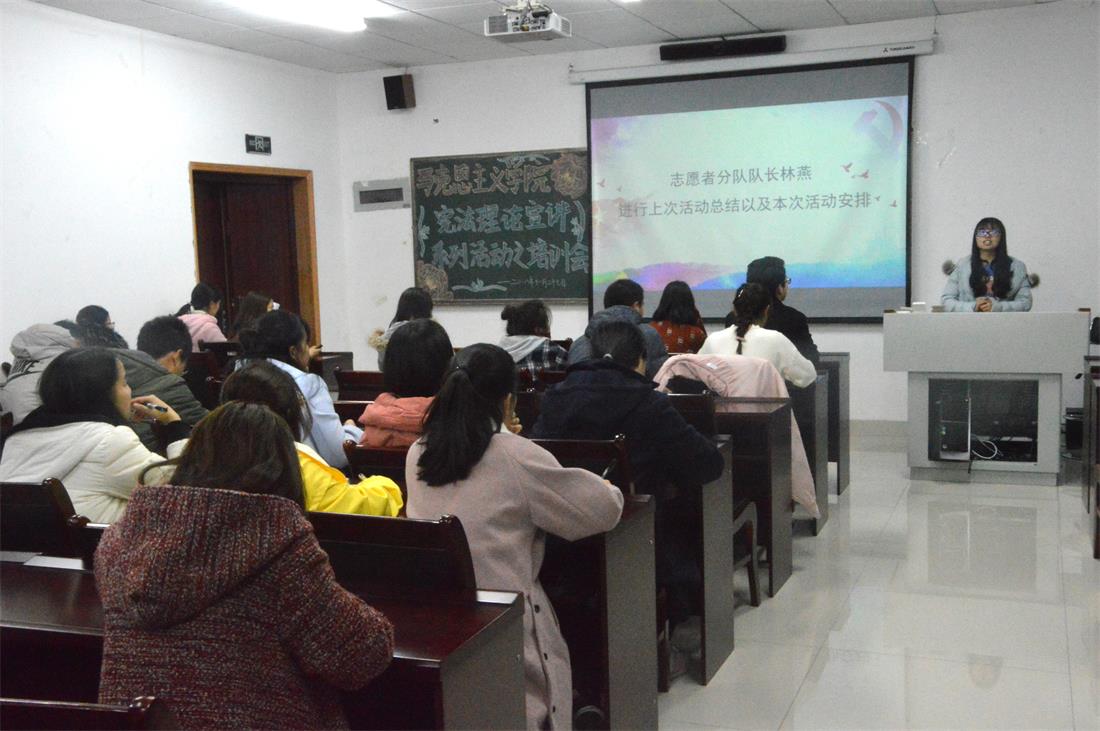 为普及志愿者法律知识,增强其法律意识和法律素养,为即将举办的宪法理论宣讲活动做更充分的准备,2018年11月27日21时30分,h小说