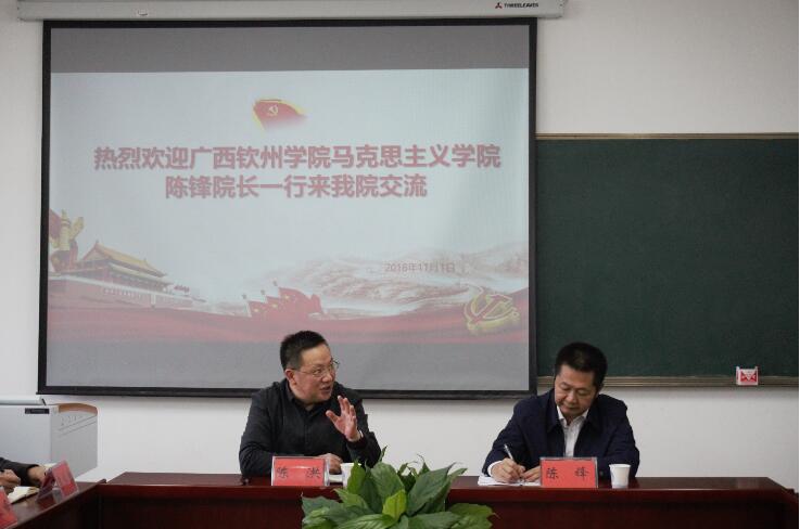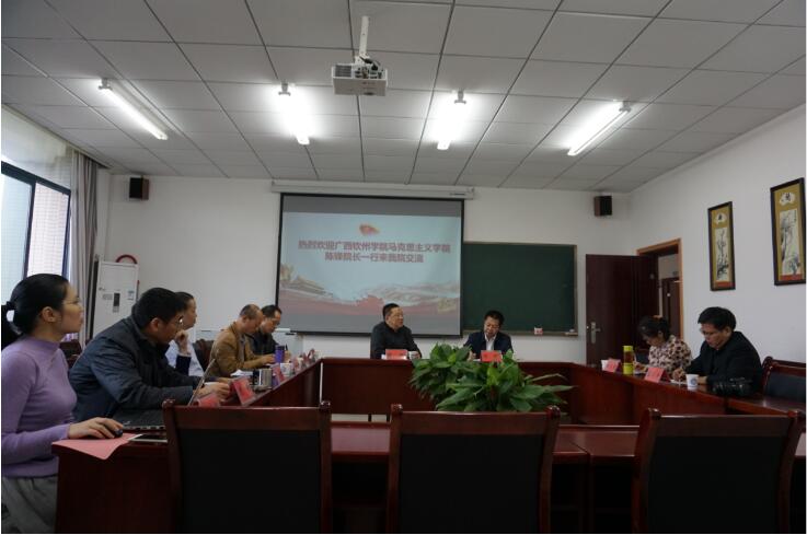 为加强和各高校h小说 学习与交流,2018年11月1日,h小说 迎来钦州学院h小说 陈锋院长携办公室主任吕剑新博士、原理课教研室主任江宗超老师一行的到访交流。h小说 院长陈洪、副院长况明安及相关课部教师热情接待并出席了此次会议。