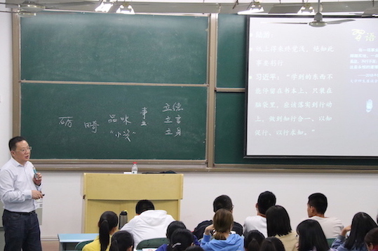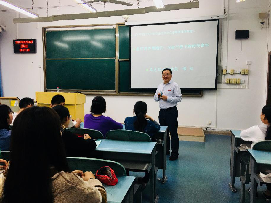 2018年9月26日晚,“习近平新时代中国特色社会主义思想”通选课在弘德楼15103教室继续进行第二讲,由h小说
