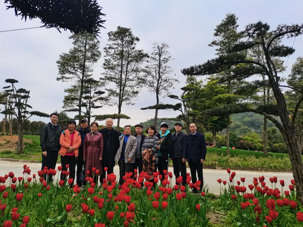 重庆太寺垭森林公园位于重庆市沙坪坝中梁镇新发村,坐落于中梁山山脉北部环形山麓处,处于长江中上游防护绿化带范围内,公园以植物观赏为主。当下时节,郁金香盛开、芍药含苞、红叶初红、浩瀚湖波粼,最适宜老同志春日漫游。经过40多分钟车程,老同志们平安到达太寺垭森林公园。他们沿着宽阔平静的浩瀚湖行走,漫步在湖边的林荫小道上,赏着鲜花,呼吸着新鲜空气,回忆着教书育人时的点点滴滴,畅谈着退休后的幸福生活,关心着学院现在的发展,心中充满无限的感慨与欢乐。游走中,老同志们与美丽的风景时时合影,留下诸多美好瞬间。