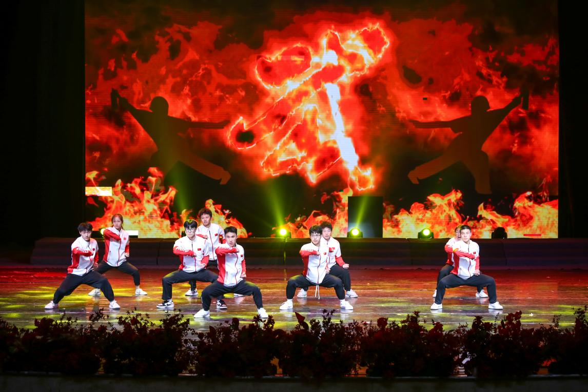 由体育与健康科学学院“王红旭”团支部成员带来的武术表演《“武”动青春》,展现了中华武术的力量,将现场气氛推至高潮。