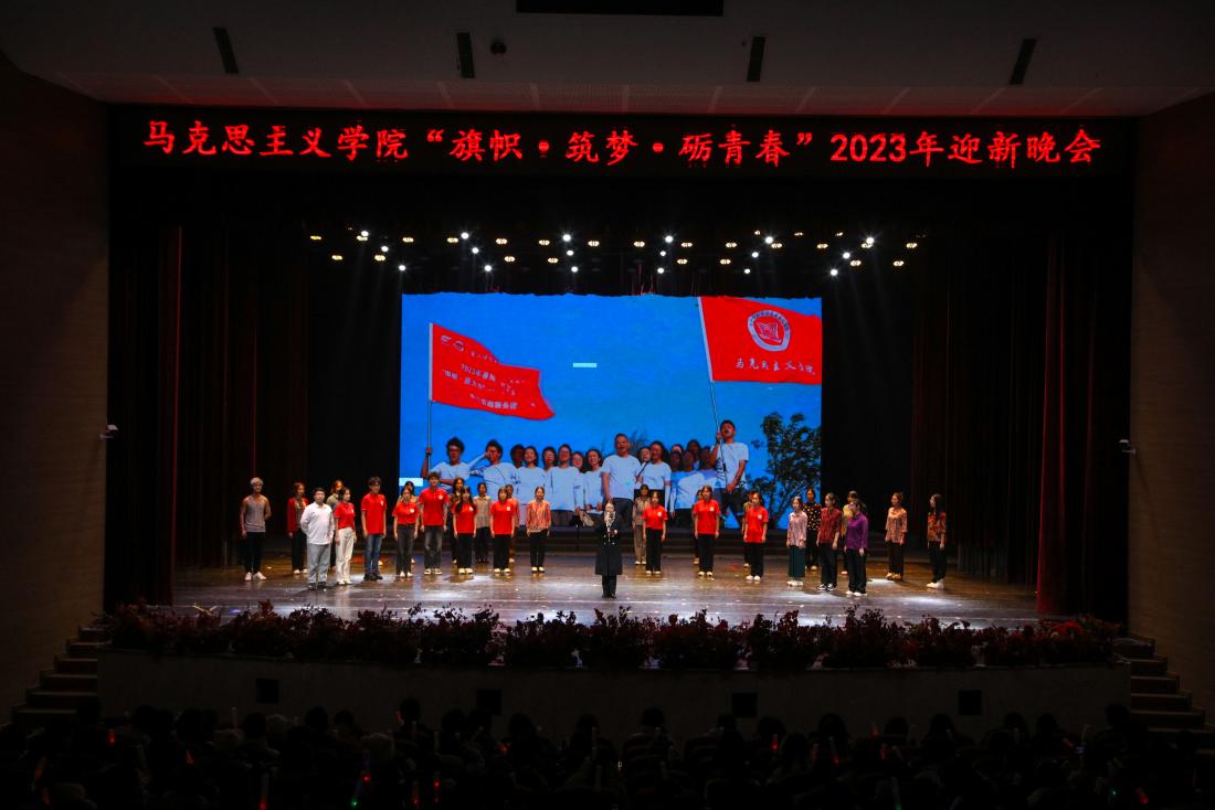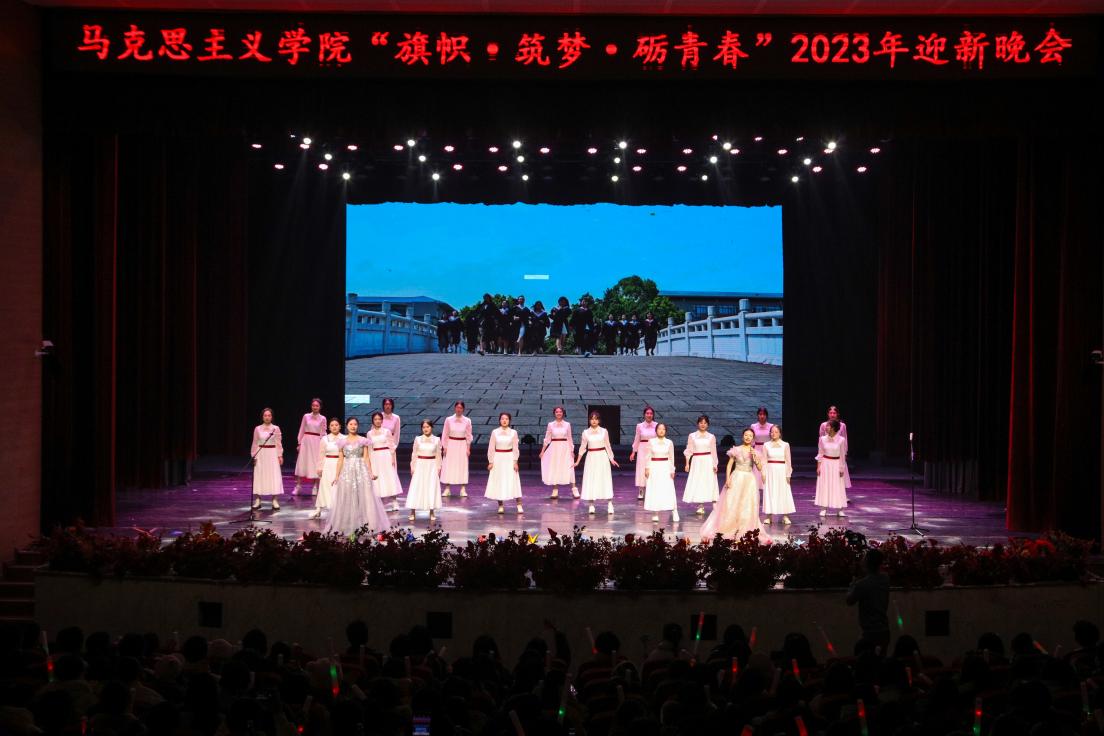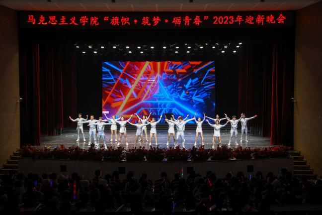 于校友会堂演出厅举办以“旗帜•筑梦•砺青春”为主题的2023年迎新晚会。h小说