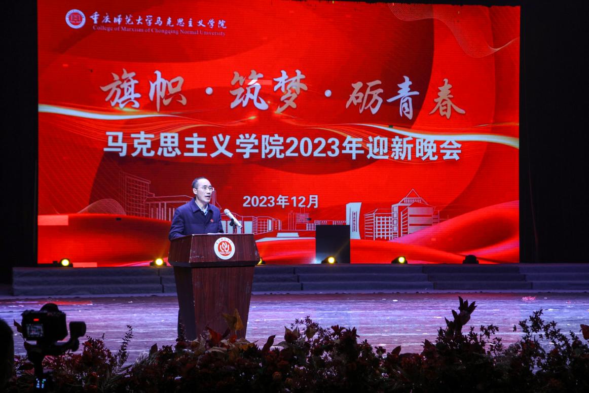 党委书记李晓燕致辞。李书记以学院始终坚持党建统领,不断积聚力量、共促发展为背景,肯定了学院在本年度取得的可喜成绩和丰硕成果。在此基础上,李书记对未来学院发展提出三点希望:一是旗帜引领、凝心铸魂,彰显马院“高度”,始终保持马院姓马的鲜明底色;二是筑梦远航、坚守初心,涵育师者“大度”,为教育事业薪火相传积蓄力量;三是砥砺青春、矢志奋斗,积淀人生“厚度”,践行强国有我的誓言。