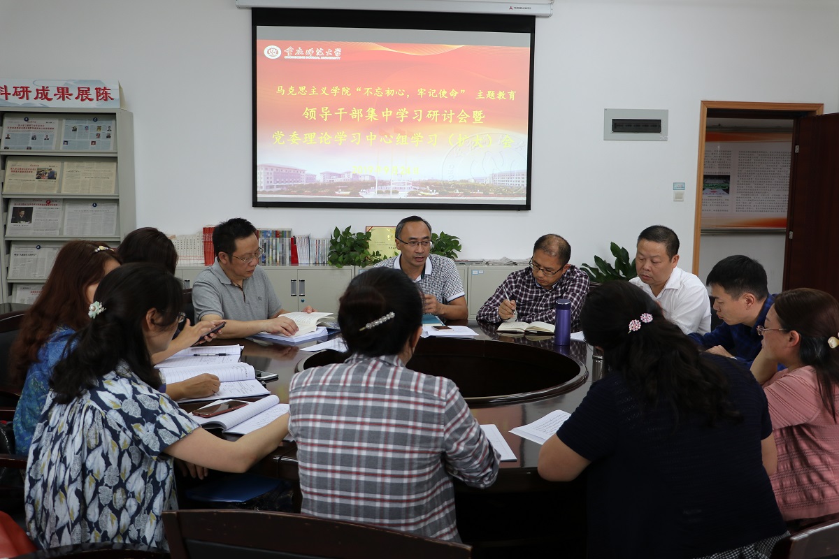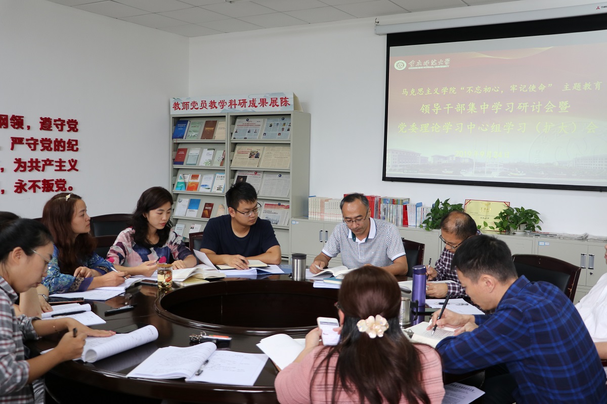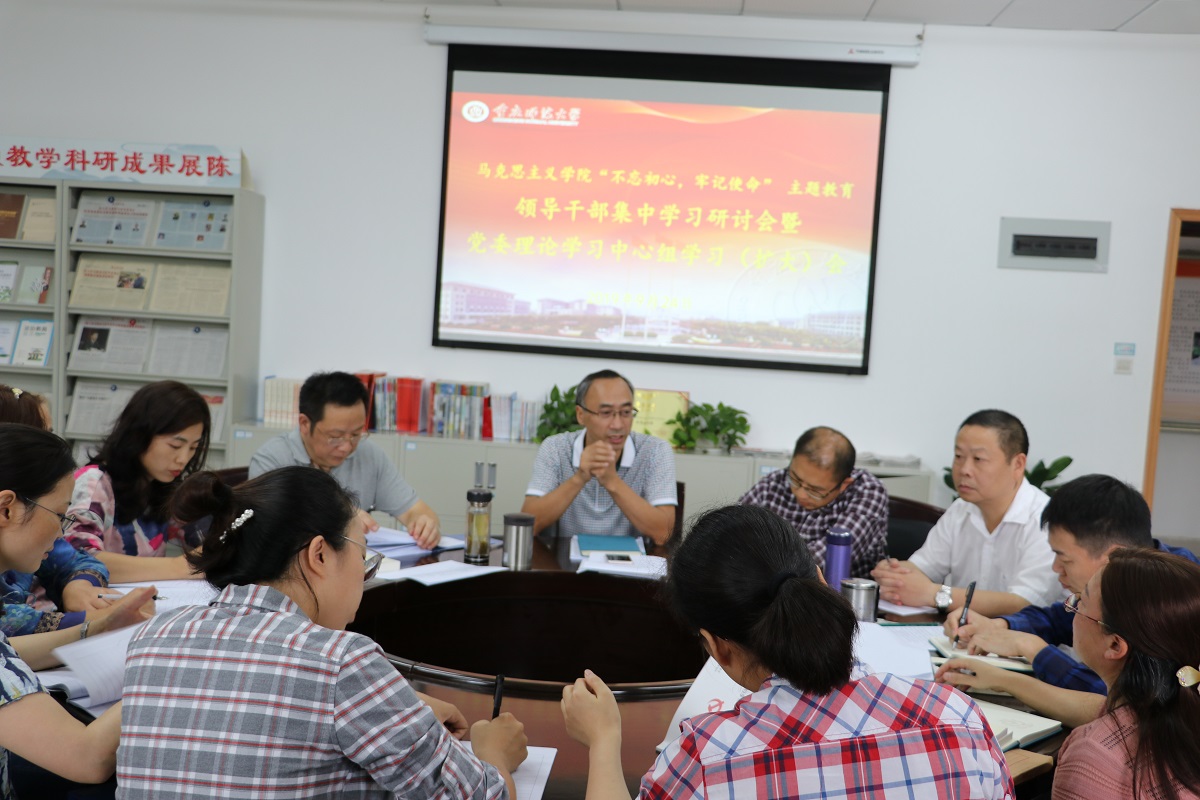 “不忘初心、牢记使命”主题教育领导干部集中学习研讨会暨党委理论学习中心组学习会,学院党委委员、纪委委员、支部书记、组织员参加会议。会议由党委书记刘军主持。