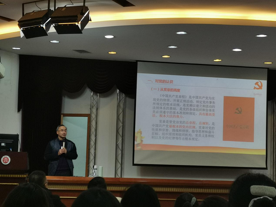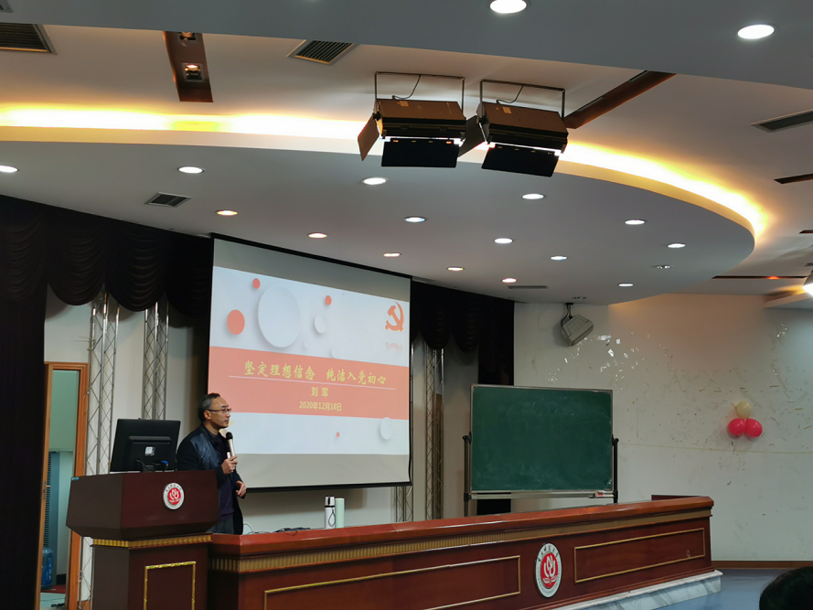 在凯撒报告厅开展了“坚定理想信念 纯洁入党初心”的主题党课。本次讲座由学院党委书记刘军主讲,党委副书记方敏主持,2019级全体同学参加。