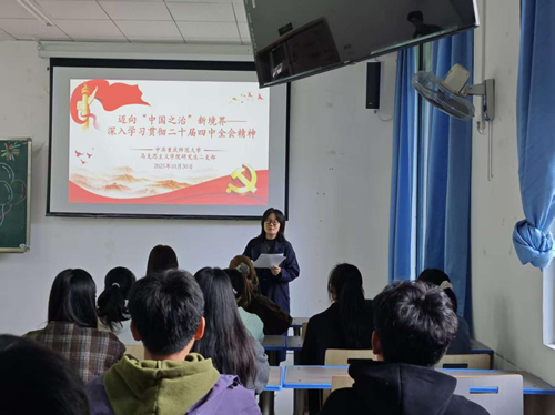 2025年10月30日13:30,研究生二支部在汇贤楼X103教室组织开展了以《迈向“中国之治”新境界——深入学习贯彻党的二十届四中全会精神》为题的主题党日活动。支部书记代悦主持会议并总结讲话。支部全体党员参加会议。