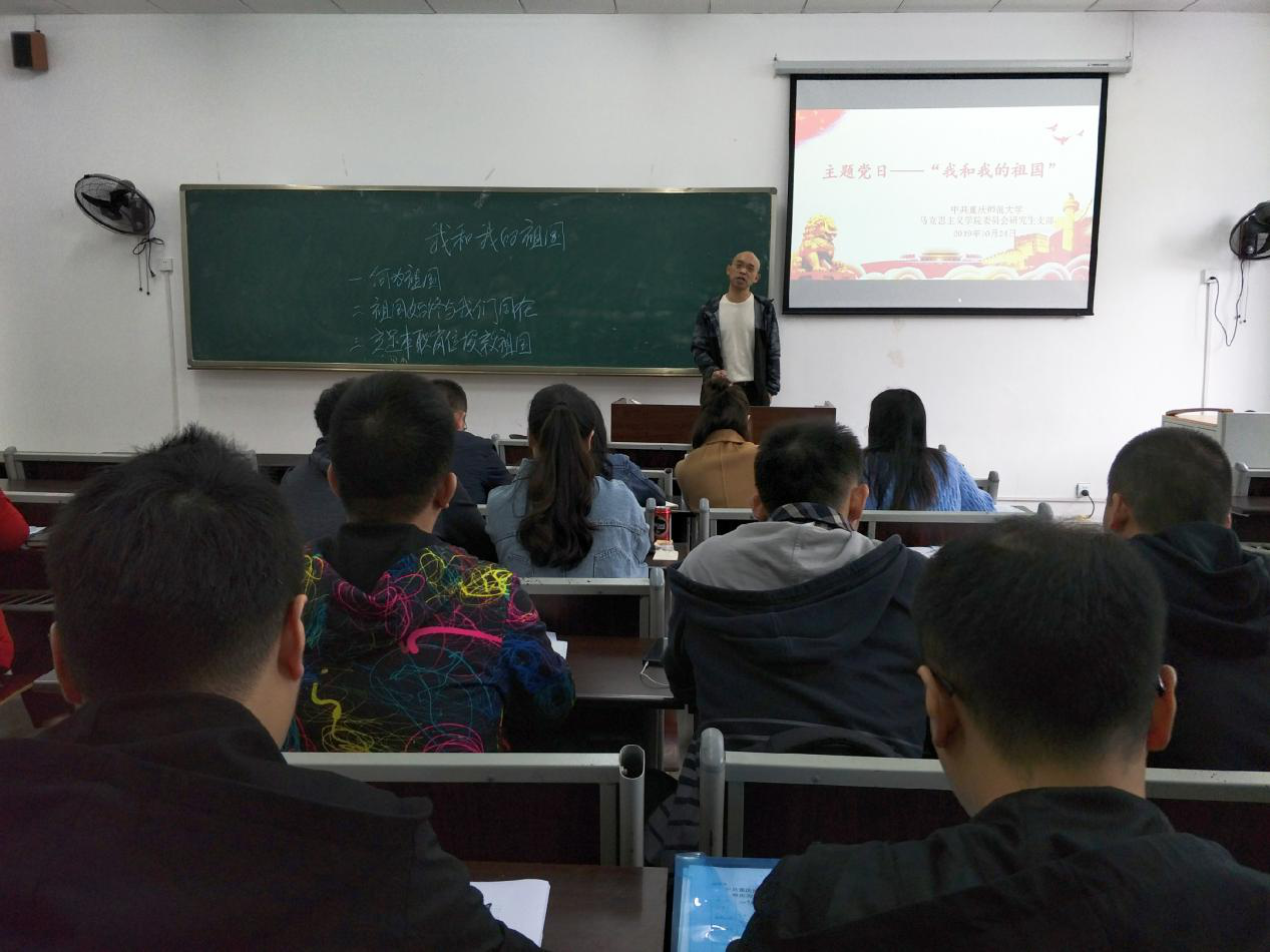 研究生党支部在汇贤楼107教室召开了“不忘初心、牢记使命”主题教育之“我和我的祖国”主题党日活动,会议由支部书记李剑同志主持。