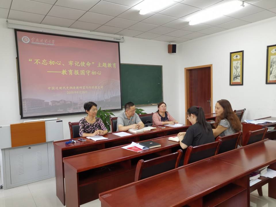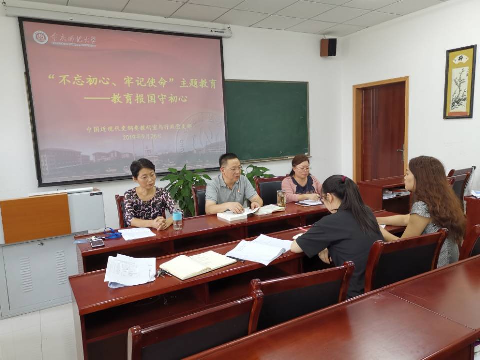 首先,全体党员一起观看了视频《习近平总书记在“不忘初心、牢记使命”主题教育工作会议上的讲话(2019年5月31日)》。其次,陈洪、周秀红二位同志围绕教育报国守初心发表了自己的心得体会。陈洪同志表示,近段时间以来学习了习近平总书记的重要讲话精神,重温周恩来、刘少奇、朱德、陈云等老革命家的生平事迹,通过对照党员的八项义务、六项标准,自己还要认认真真研读党章、党史,研读习近平总书记最新思想,督促自己,强化党员意识,做好本职工作,严守党的纪律和规矩。周秀红同志表示她的初心就是当一名老师,为学生传道授业解惑,并回顾了她同为教师的母亲在她的成长路上对她潜移默化的影响,她把她的大学老师送她的话“千教万教教人求真,千学万学学做真人”牢记于心,并始终贯穿在了她的工作生活中。第三,由高德华同志领学,大家共同学习《中国共产党纪律处分条例》。第四,根据今天学习的内容,大家展开讨论进行对照检查。其中大家都对和谐问题产生了共鸣,一致表示,家和万事兴,小到支部,大到学院都是我们共同的家,在家里有问题提,有问题改,让学院这个大家庭风清气正、和谐向前发展。