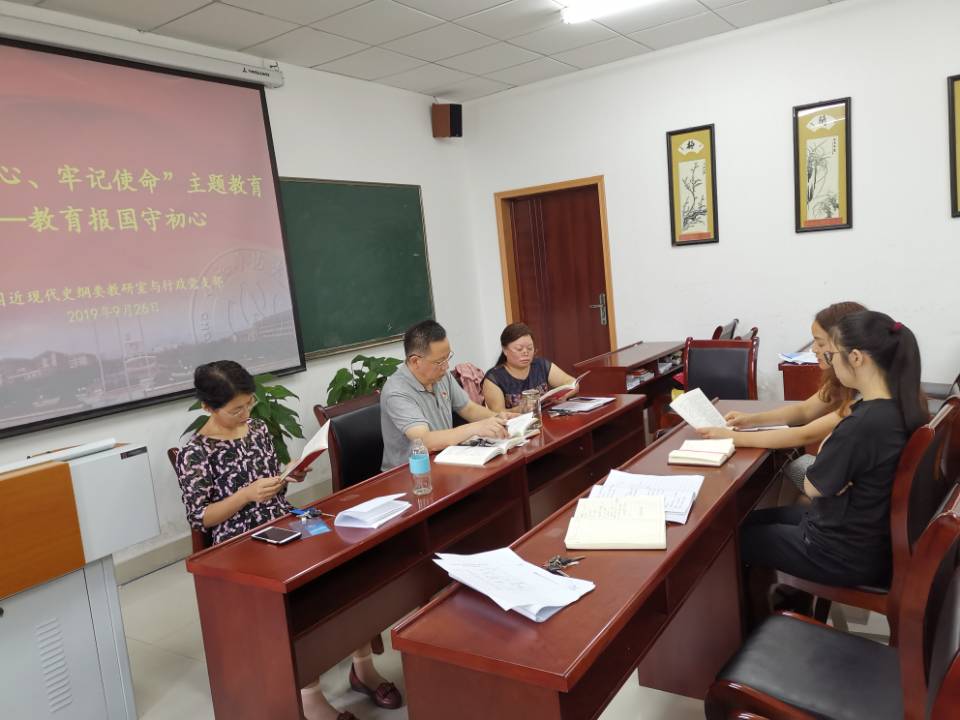 309会议室召开了“不忘初心、牢记使命”主题教育之“教育报国守初心”主题党日活动。支部党员参加会议,会议由支委高德华同志主持。