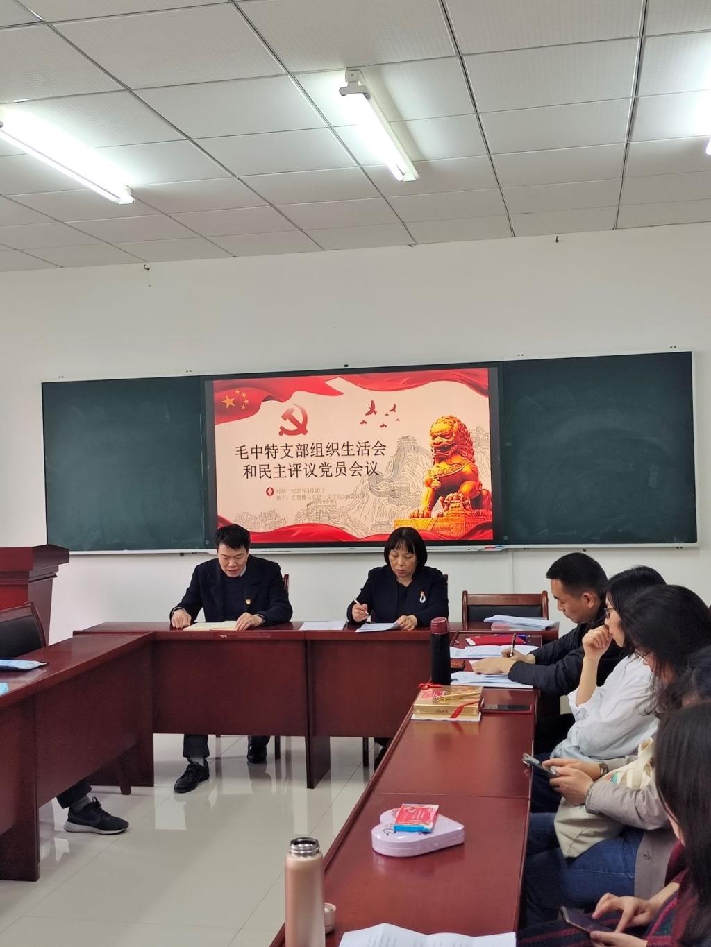 按照校、院两级党委部署要求,2022年3月10日下午,毛泽东思想和中国特色社会主义理论体系概论教研室党支部在学院楼309会议室召开支部党员大会,开展2021年度党支部组织生活会,进行民主评议党员活动。学院党委委员姜土生同志列席组织生活会并做指导,会议由支部书记郑瑜同志主持。