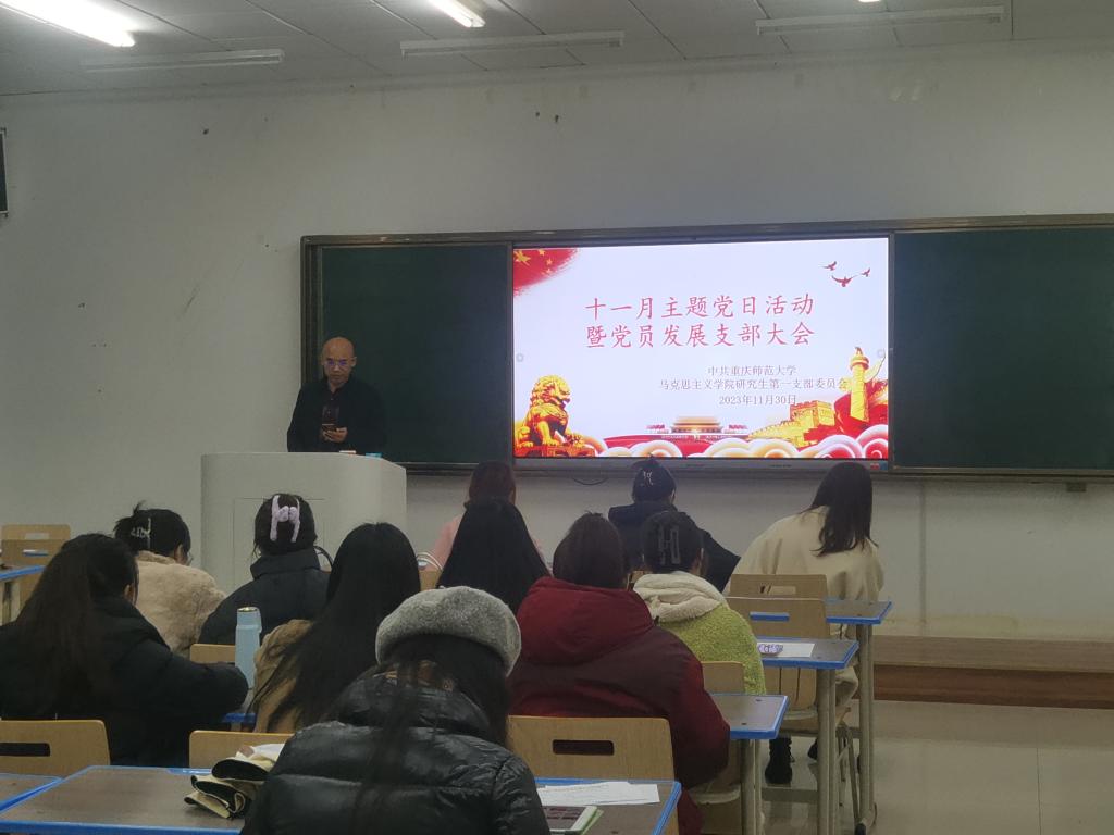 研究生第一支部于汇贤楼X109教室召开十一月份“主题党日活动暨党员发展大会”,会议由支部书记李剑同志主持,共两项议程。