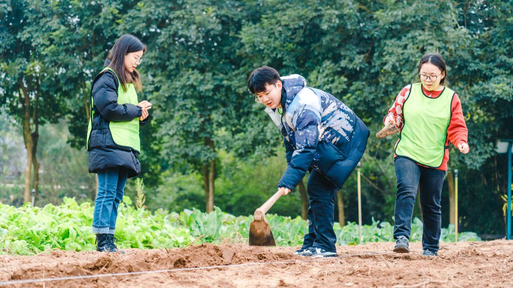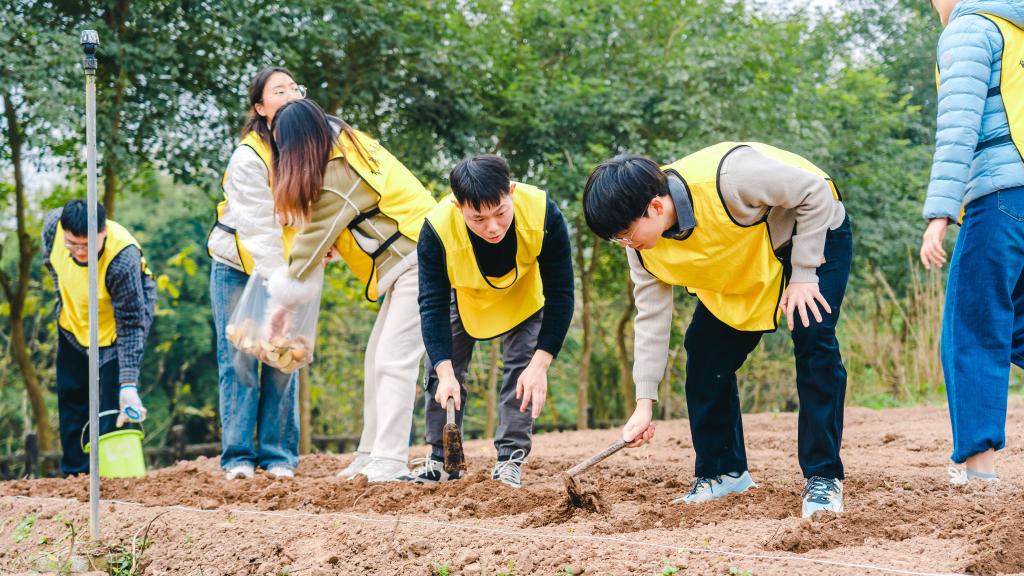 下午,各支部党员分队有序进行劳动实践、开展劳动教育,切身体会“幸福是奋斗出来的”的深刻内涵。在“接力挑箩筐”“蔬菜连连看”等游戏中,感受团结协作的重要性,加深对于乡村生活的认识。同时通过认领“责任田”的方式,师生党员合理协作,播种土豆,期待来年的收获,切实感受农作的魅力与辛苦,感悟当前美好生活的来之不易。各支部党员在劳动实践中,受教育、长才干,立志今后为乡村振兴做出贡献。
