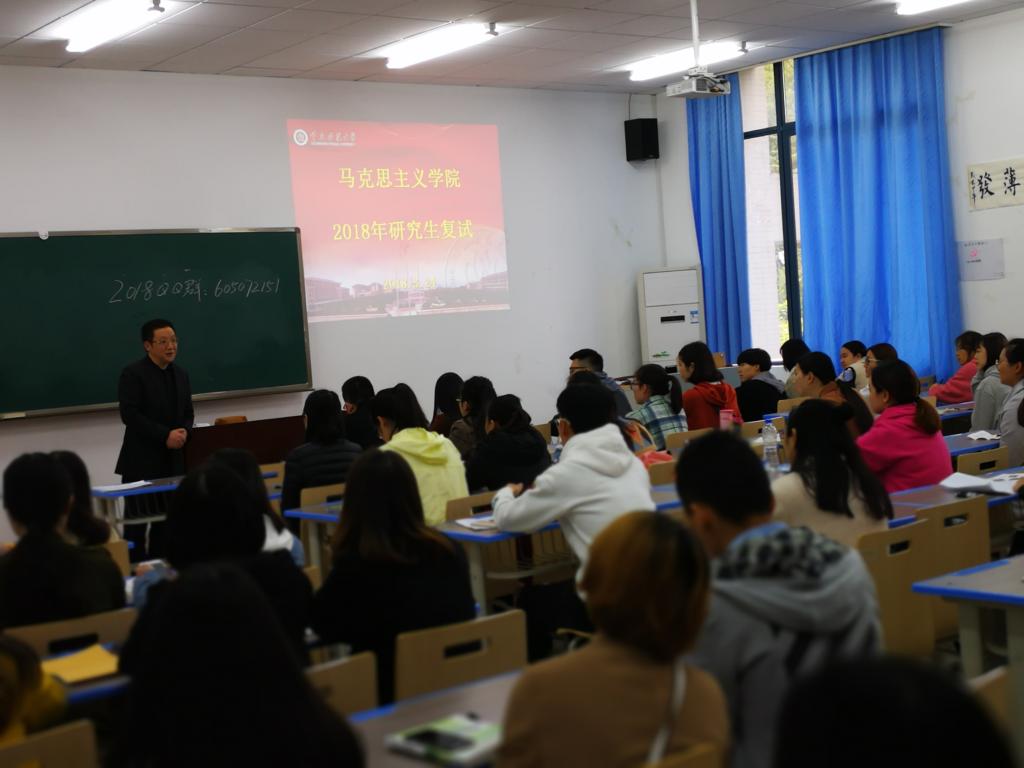 共有65名考生第一志愿上线,64名考生报到参加复试。各专业考生在复试的两天里经过了专业笔试、专业面试和英语综合能力考试,根据考生综合成绩,学院严格从高到低择优录取了58名研究生,圆满完成了2018年研究生招生任务。其中哲学学科共录取全日制研究生10名,马克思主义理论学科共录取全日制研究生26名,全日制学科教学(思政)方向录取研究生14名(包括1名推免生),非全日制学科教学(思政)方向录取研究生8名。