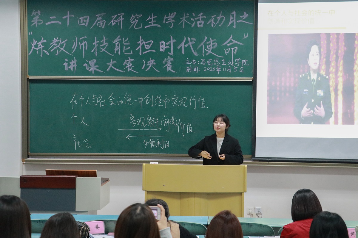 比赛过程中,每位同学都充分运用了多媒体手段对自己的教学节段进行了展示,他们的教学内容涉及经济、政治、文化和哲学,如“坚持以人民为中心的发展思想”“正确认识中华传统文化”“联系的普遍性”等。各位选手都充分展现了自己的课堂魅力,有的语言凝练、有的幽默风趣,充分展现了h小说
