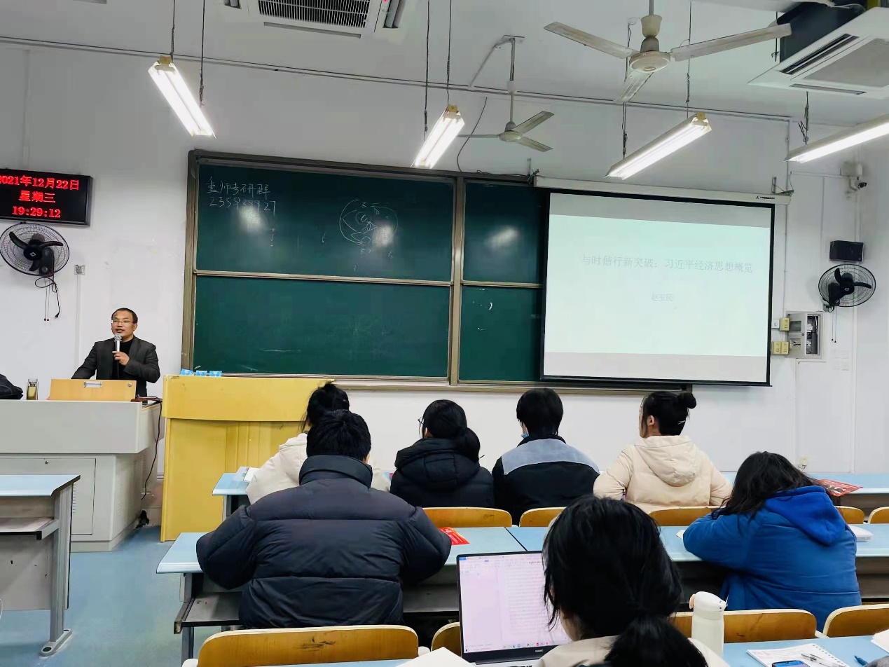 2021年12月22日晚,赵玉民副教授主讲的《习近平新时代中国特色社会主义思想专题摘编》通选课第七期第十四讲开讲,各学院各年级150余名学生参加了本次课程学习。本次授课由本通选课课代表万莹莹主持。