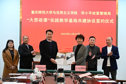 与邓小平故里管理局分别签署了共建协议,进行共建授牌,并向管理局资深讲解员颁发了“大思政课”兼职讲师聘书。