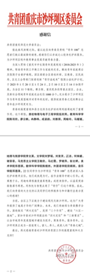 王敬欣、马红霞、罗晓萍、彭文婷作为沙坪坝区“青年100”志愿者深入各托护班教学点位,他们或化身学业引路人,执笔为灯,在作业辅导中耐心引导;或设计创意课程,在寓教于乐中激发无限童趣;或以温暖陪伴构建情感纽带,用青春热情驱散冬日寒意,为"青仔"们打造了充满温度与智慧的寒假成长空间,在青春实践中展现出马院学子的蓬勃力量。