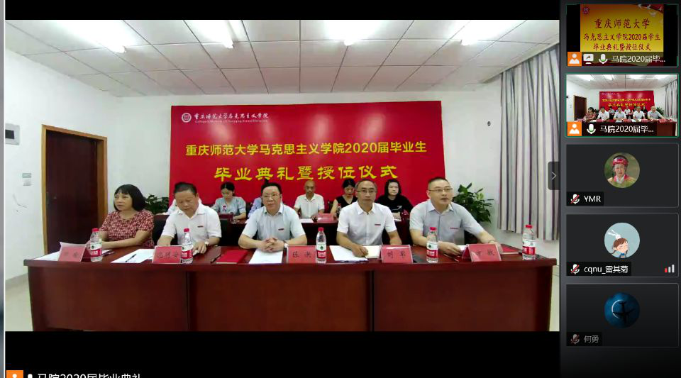 六月,绿荫环绕、生机盎然。2020年6月28日14时30分,h小说 2020届学生毕业典礼暨授位仪式于汇贤楼309会议室隆重举行,由于疫情防控需要,典礼采用线上线下相结合的方式,于云端实现“共聚一堂”。学院党委书记刘军、院长陈洪、党委副书记方敏、副院长况明安、教师代表郑瑜、研究生辅导员李剑、本科毕业年级辅导员刘洪及学生代表出席本次典礼,h小说 全体教师、2020届全体研究生和本科毕业生、学生会全体成员共300余人齐聚云端。典礼由学院党委副书记方敏主持。