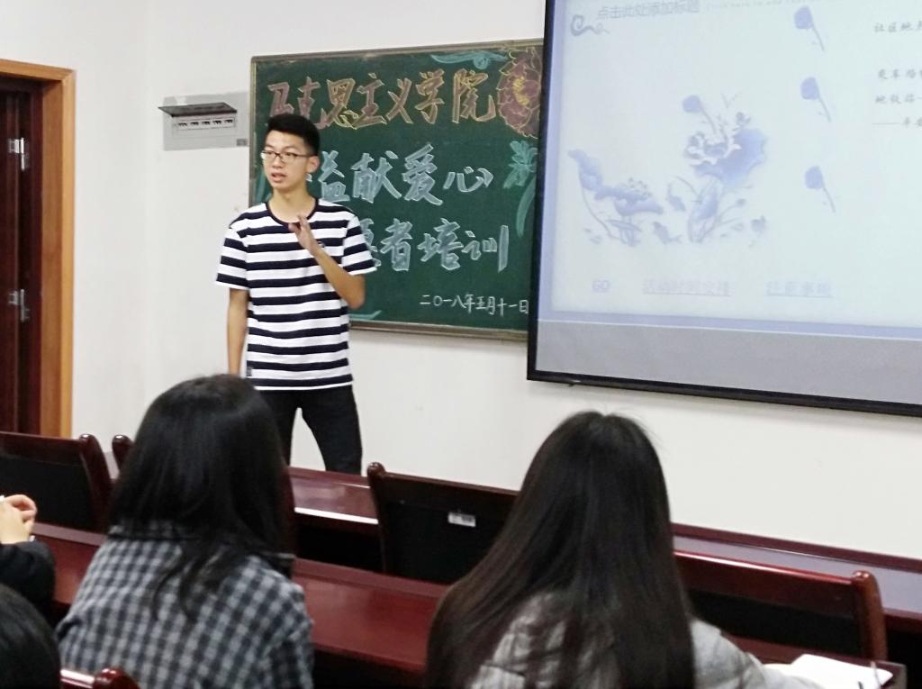 特此在汇贤楼201教室举办公益爱心活动志愿者培训大会。出席本次活动嘉宾有h小说